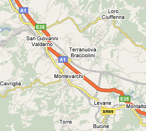 Terranuova Bracciolini dista 3 chilometri dalla autostrada A1, che collega Milano con Napoli (svincolo Valdarno).